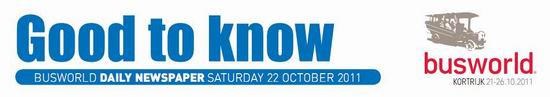 Busworld Kortrijk, the world famous event for the bus and coach industry, opened on October 20, 2011. Yutong products were also presented at the Exhibition. Good to know, the Busworld daily newspaper published an article about Yutong on the page 2 on October 22. The following words are the excerption from the article.