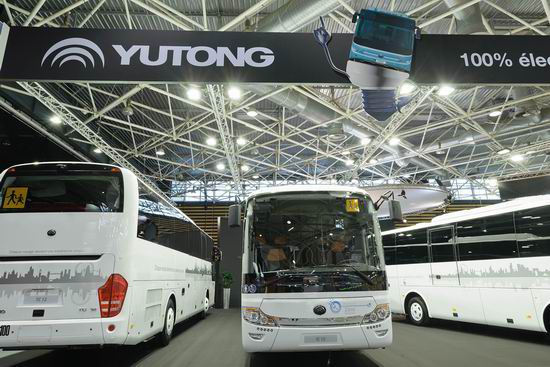 Yutong, the leading bus maker in China, brought four latest bus models on display. At its exhibition stand, Yutong T12 high-end tourism coach and ZK6938HQ tourism coach, both of which have successfully passed Euro VI emission standards, have aroused keen interest among the visitors. Outside the exhibition hall, three Yutong buses were also available for trial drive by bus operators.